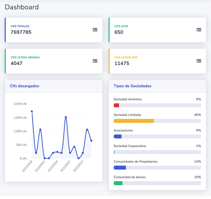 Gracias a nuestro desarrollo en la gestión de grandes volúmenes de datos, nos permite la monitorización diaria de CUALQUIER TIPO DE NIF (PERSONAS FISICAS o cualquier tipo de EMPRESA, SOCIEDADES CIVILES, COOPERATIVAS, FUNDACIONES, ASOCIACIONES, ETC )